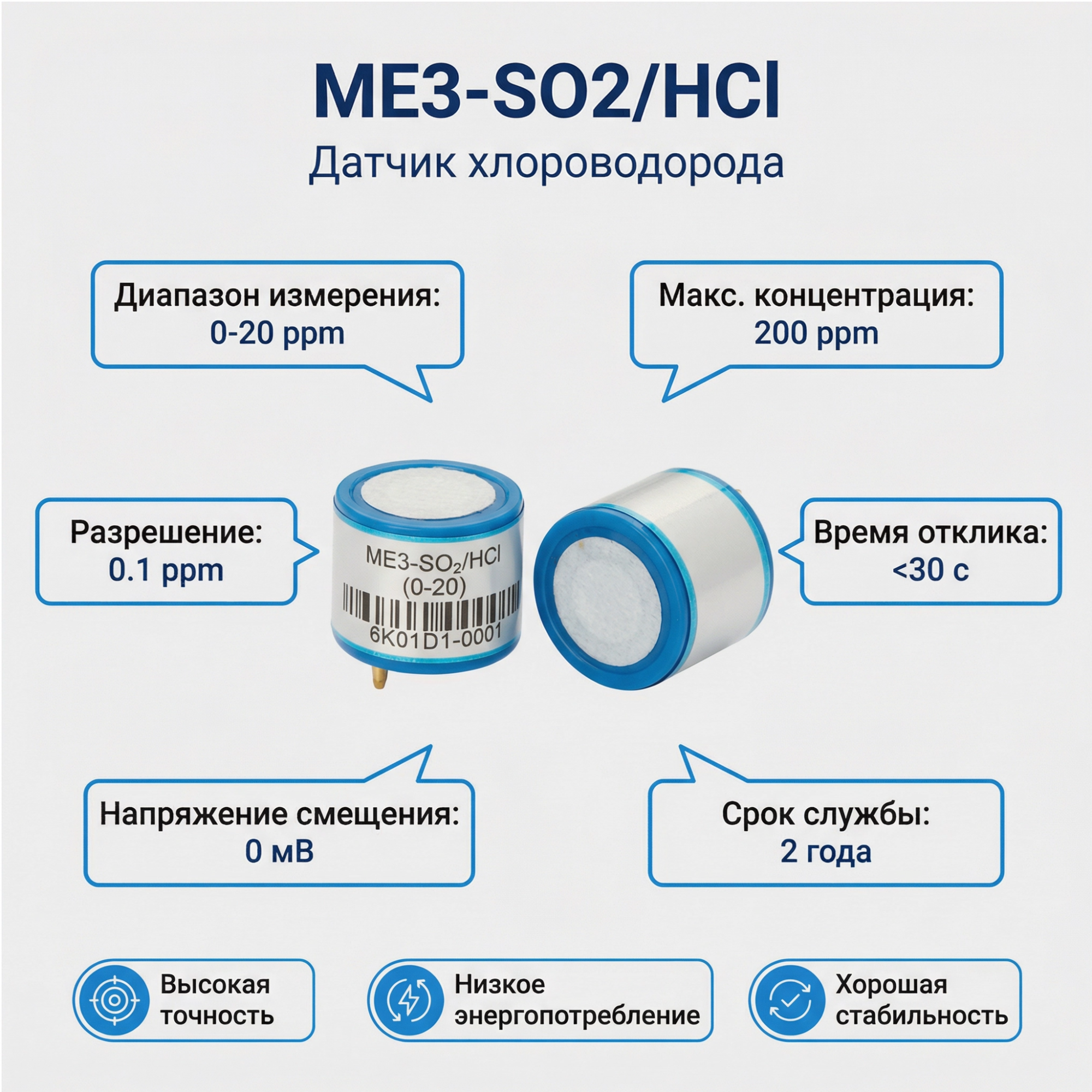 17. ME3-SO2 Электрохимический датчик хлороводорода (HCl)
